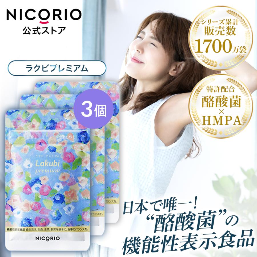 - ダイエット食品 > ダイエットサプリ > 【3袋set】新品未開封 ラクビプレミアム 注目 価格高騰 サプリ 値上げ予定 公式 ラクビ プレミアム 3袋 Lakubi ニコリオ 酪酸菌 腸活 腸内環境