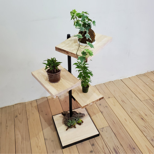 360°回転3段ラック 観葉植物 無垢板 回転 ディスプレイ カフェ風 360°回転3段ラック 観葉植物 無垢板 回転 ディスプレイ カフェ風