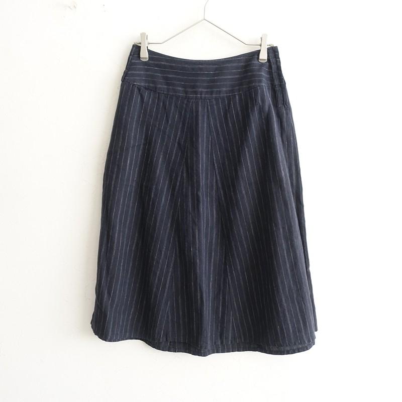 - レディース > スカート > 極美品◎マーガレットハウエル ストライプ柄 幅広プリーツロングスカート ネイビー MARGARET HOWELL(マーガレットハウエル) *リネンストライプフレア